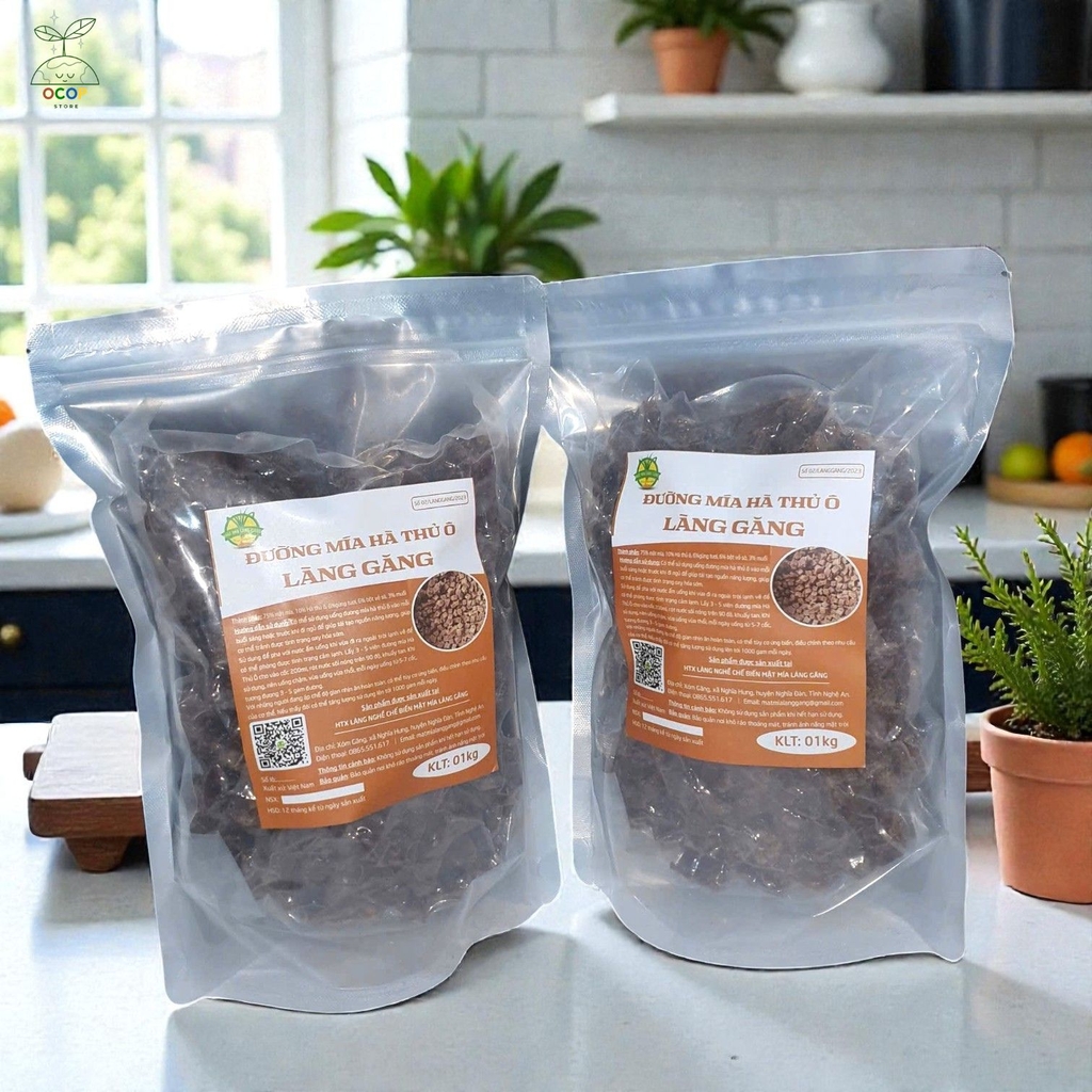 Đường mía Hà thủ ô Làng Găng: kết hợp của mật mía, hà thủ ô, gừng sẻ, muối và bột vỏ sò, bổ sung khoáng chất, ngăn tụt huyết áp hiệu quả.